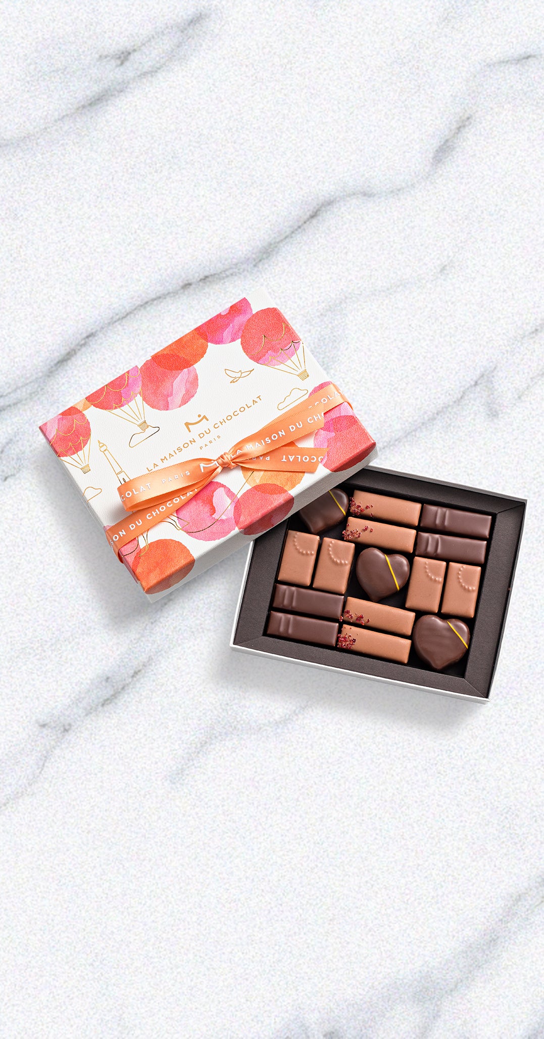 This Valentine's Day, La Maison du Chocolat unveils limited-edition flavors of strawberry jam, quince marmalade, juniper berries, and black sesame. Surprise your special someone with a celebration of your love, elegantly gift wrapped in an embossed satin bow!